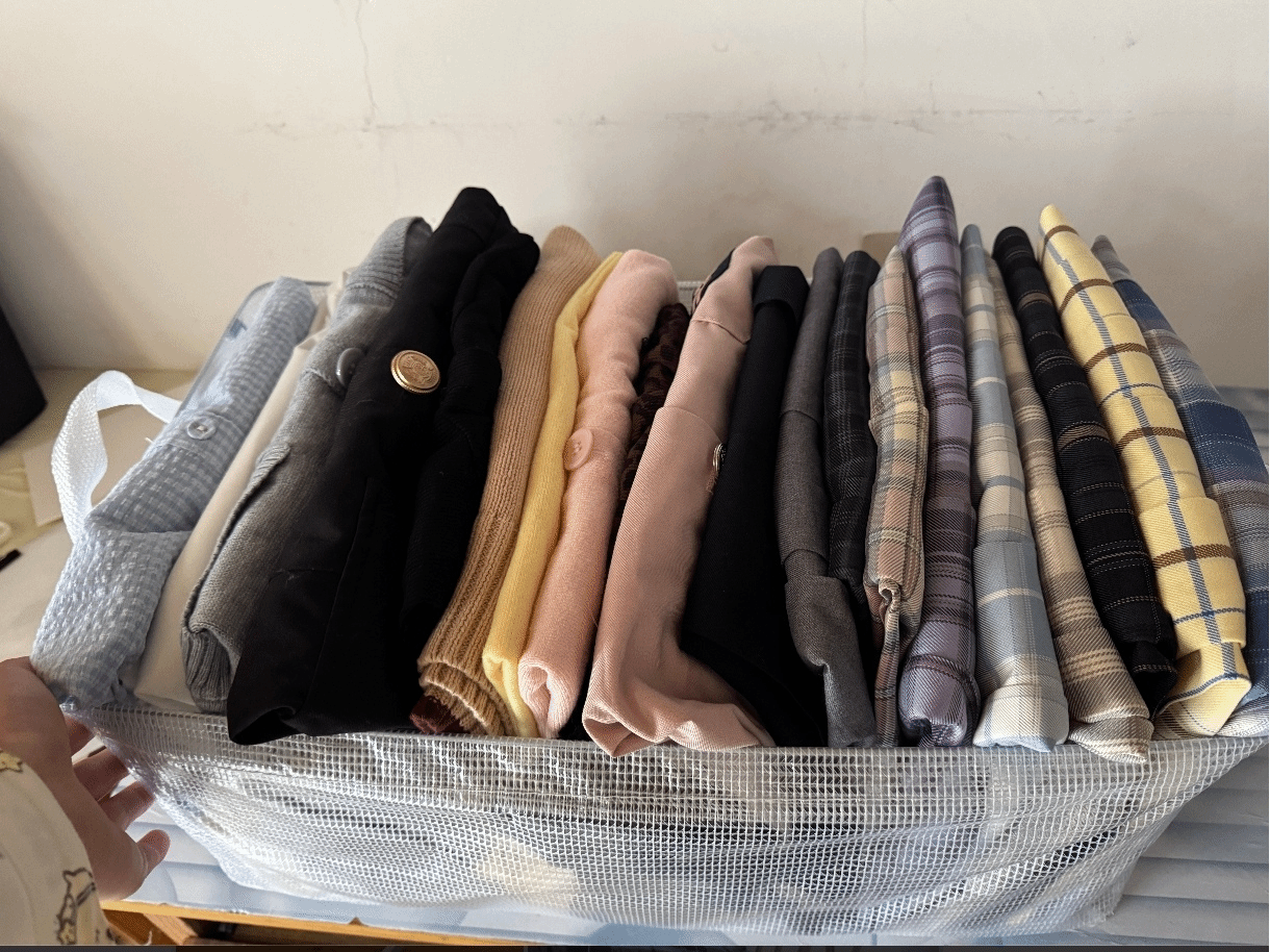 在宿舍收纳大比拼中,同学们纷纷化身“空间规划师”,以无限的创意和匠心巧思,对宿舍空间进行了一场“大改造”。他们巧妙地运用各种收纳工具,精心规划每一寸空间,将原本杂乱无章的宿舍变得井井有条,焕发出全新的活力与生机。参赛宿舍精心准备,不仅提交了收纳前后的对比照片,还附上了详细的设计说明,全方位展示了同学们的收纳理念和创意过程。“收纳不仅是整理物品,更是培养生活智慧的过程。”参赛学生刘怡畅在分享她的收纳心得时说道。她表示,在参与本次收纳大比拼的过程中,她不仅学会了如何高效利用有限的空间,还体会到了收纳背后的深层意义。通过合理布局和创意改造,同学们发现宿舍空间可以变得更加宽敞明亮,生活也可以变得更加有序和舒适。这次活动不仅提升了同学们的生活技能,还让同学们在实践中学会了如何更好地规划和管理自己的生活。