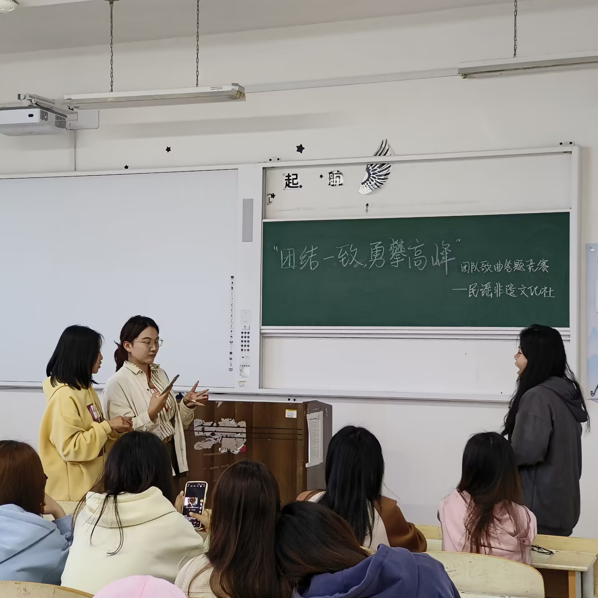 5月5日,会计金融学院民谣社,结合本社团自身社团特色,将团结与歌曲联系起来,举办了“团结一致,勇攀高峰”团队主题猜歌竞赛活动。