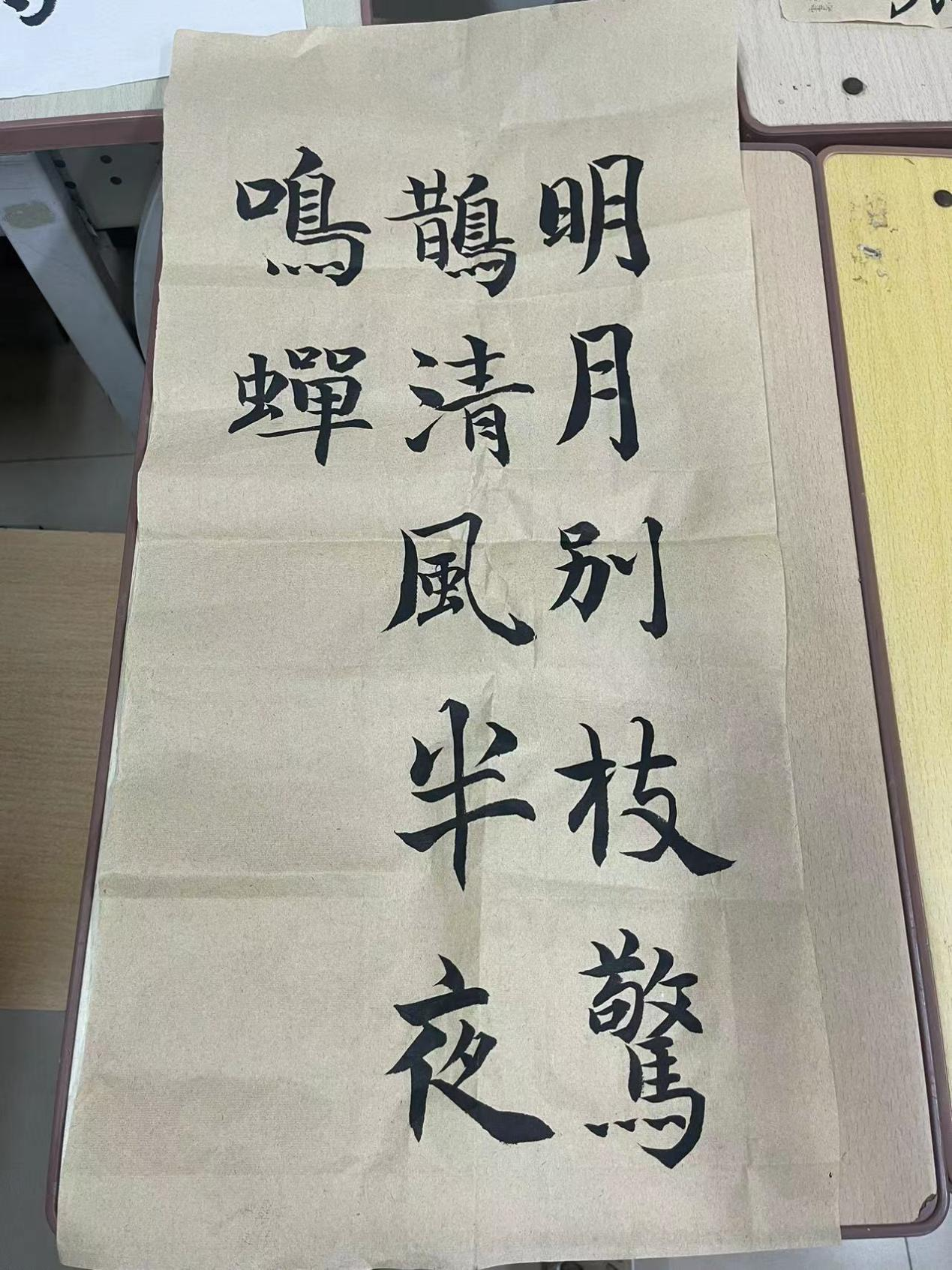 比赛过程中,参赛同学们或站或坐,挥笔泼墨,一笔一划用心书写每一个汉字,通过作品展现汉字的线条之美、形态之美。经过激烈的角逐,以下几位同学的作品脱颖而出。