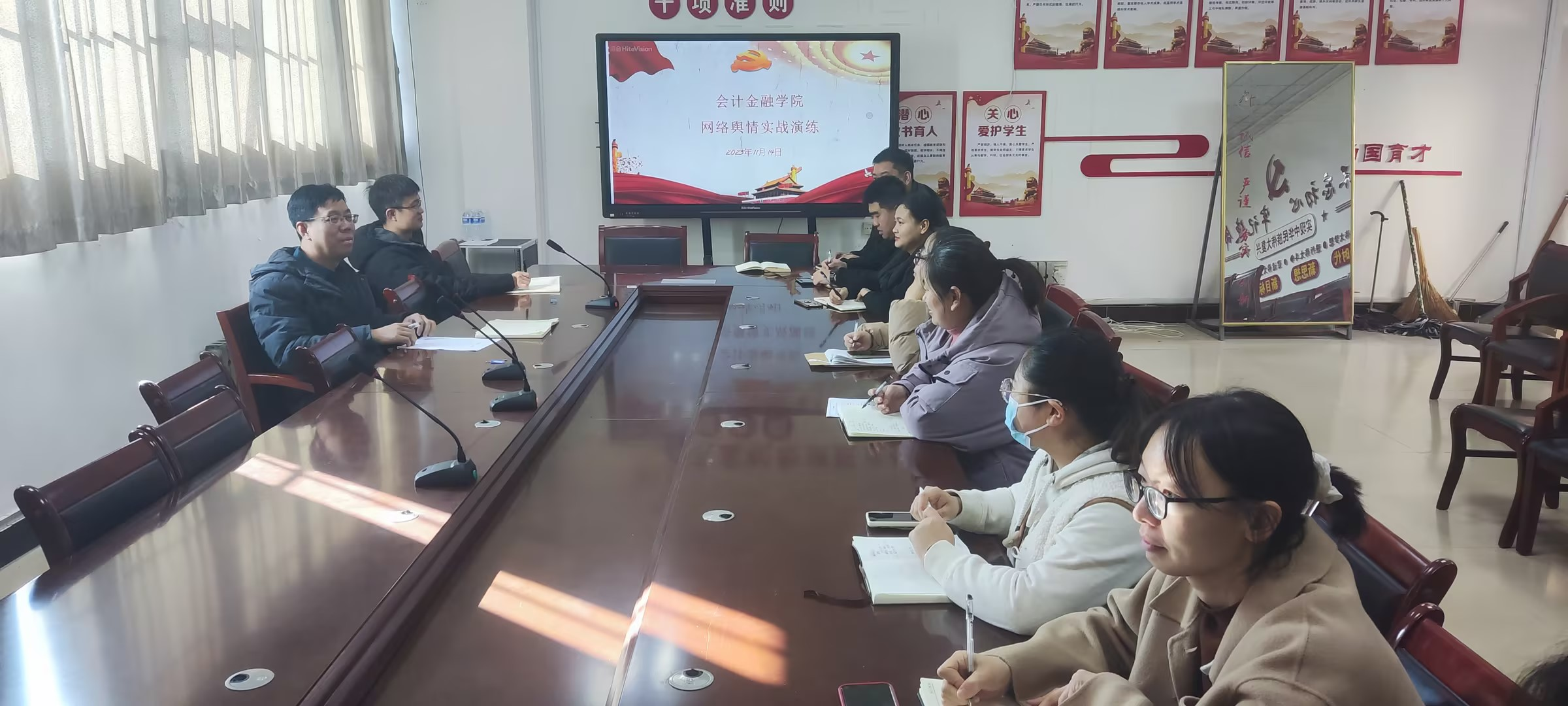 11月14日,会计金融学院举行网络舆情应急处置实战演练。演练活动由学院副院长崔立升主持,全体辅导员参加。