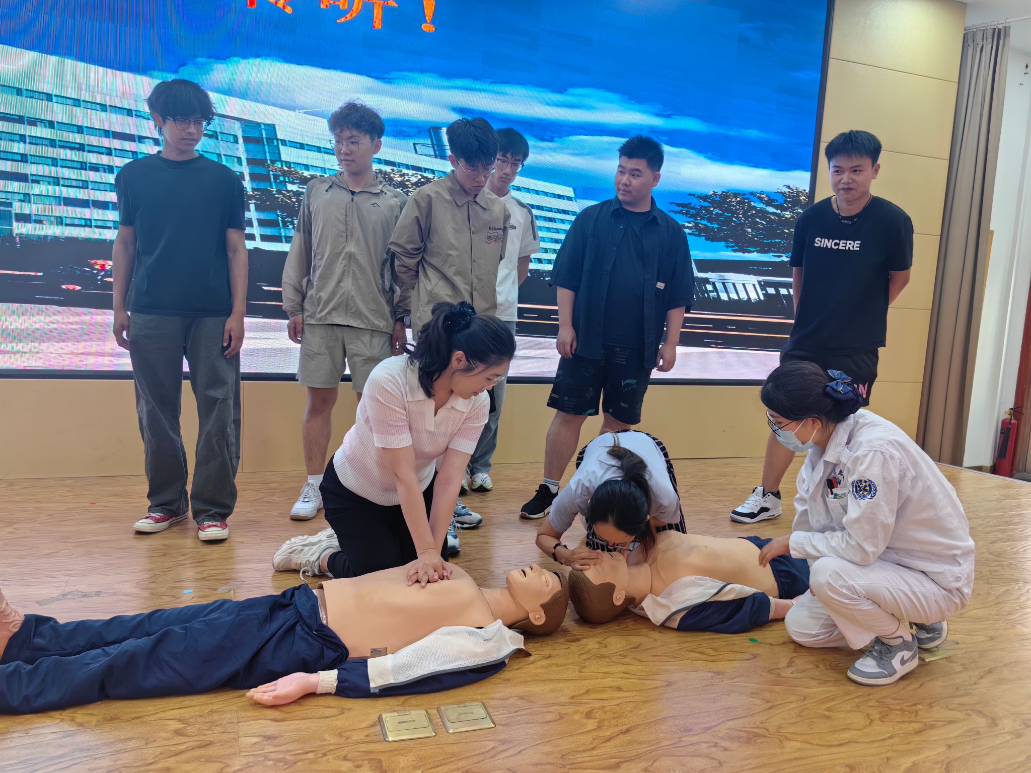 理论讲解后,医疗团队利用专业人体模型,分步骤、慢动作演示了心肺复苏的标准操作,包括环境评估、意识判断、呼救求助、胸外按压位置手法、开放气道、人工呼吸等关键环节。演示细致入微,确保师生准确掌握全流程标准化动作要领。在专家手把手的指导下,同学们纷纷踊跃上前亲身体验。学院老师们俯身于训练模型旁,认真聆听讲解,反复练习按压深度、频率与人工呼吸的配合技巧,力求动作规范、有效。师生共学急救技能的场景,不仅体现了对生命安全的高度重视,更彰显了学院教师队伍以身作则、全方位护航学生成长的育人理念。