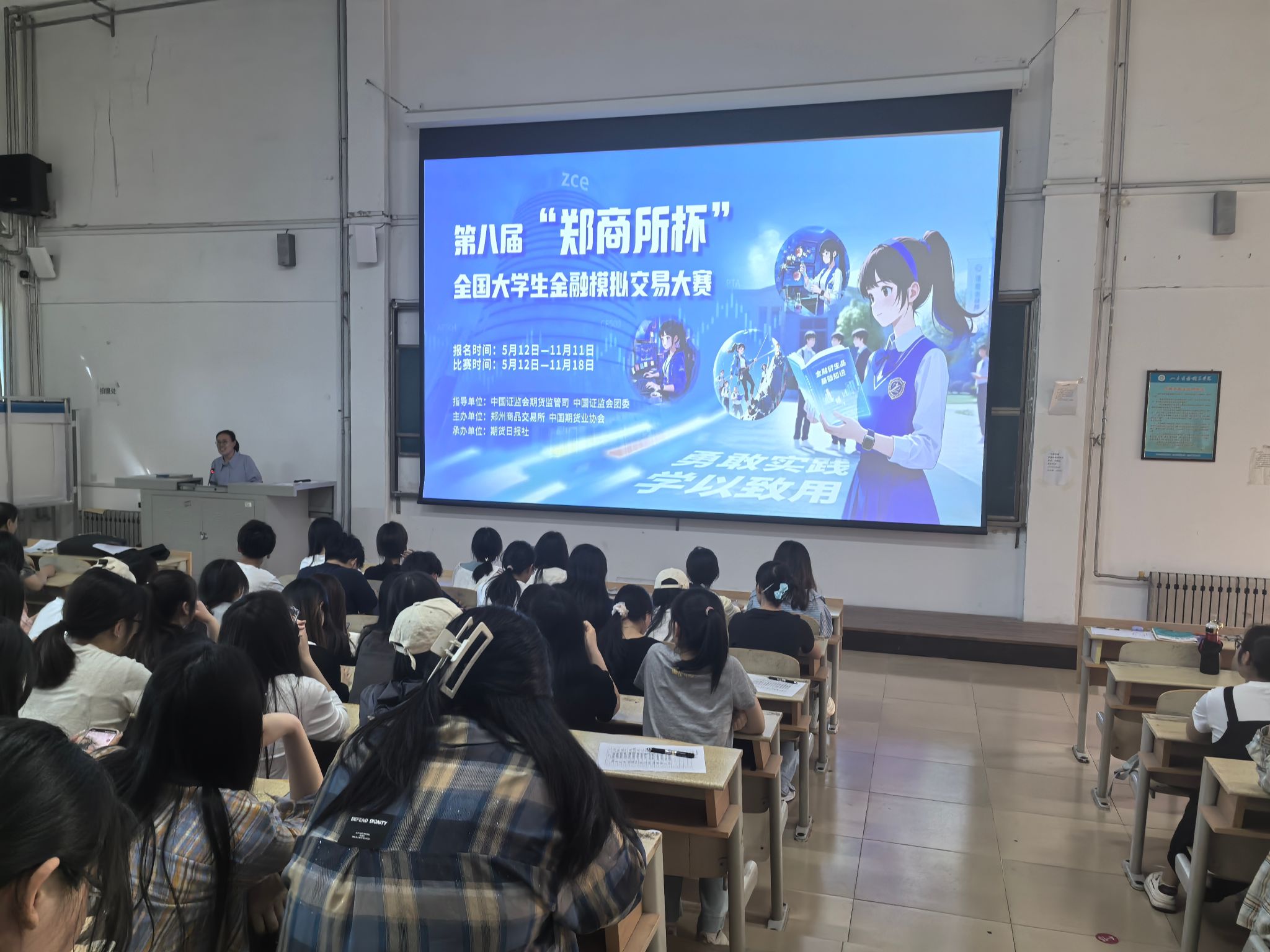 本站讯 为帮助会计专业学子深入了解金融工具在保障粮食安全中的作用,6 月 10 日,中州期货有限公司入校,面向会计金融学院师生开展“期货知识进校园”讲座,该讲座是金融知识面对面“进校园”教育宣传系列活动之一。第八届“郑商所杯”全国大学生金融模拟交易大赛宣讲会也同步举办。