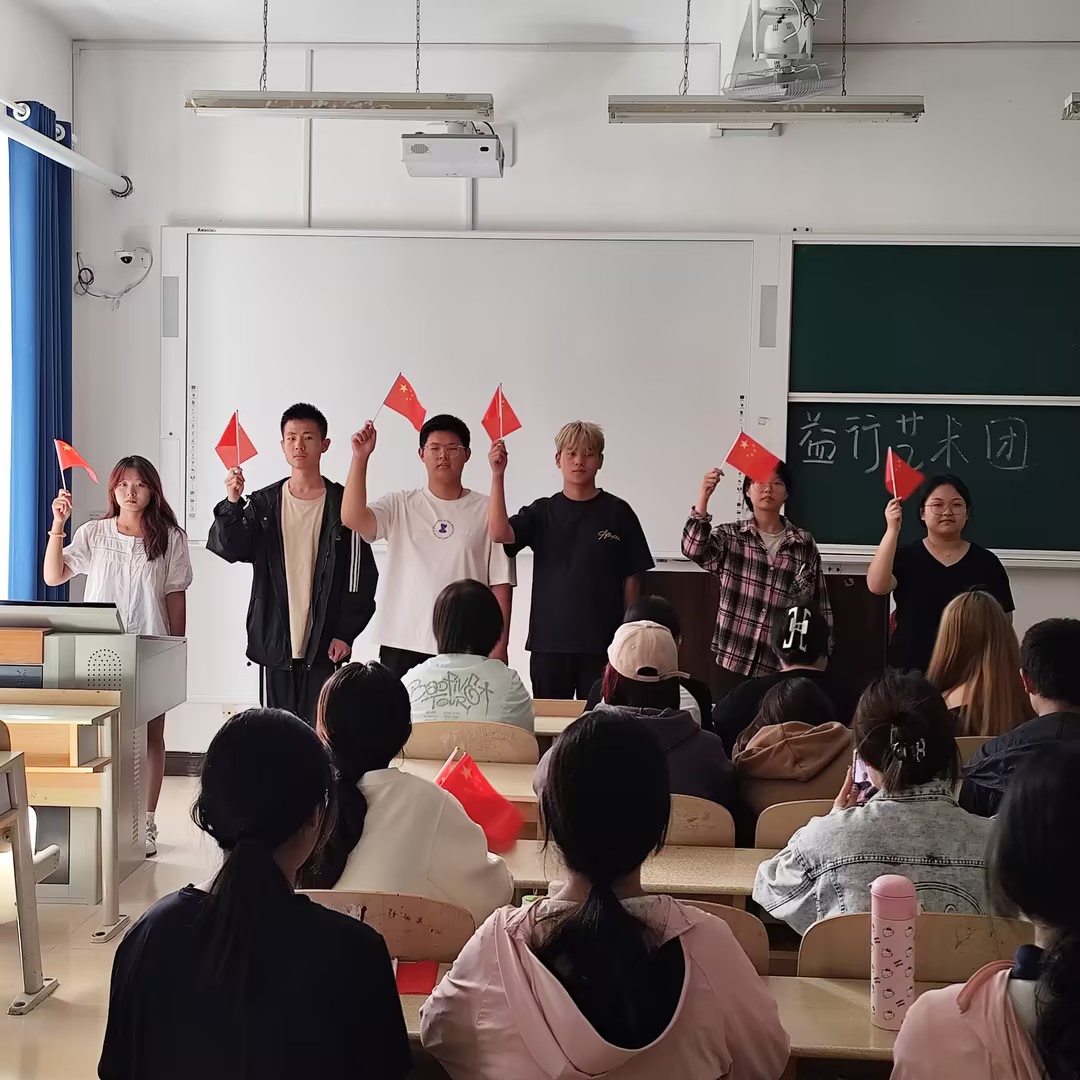 艺术交融,青春颂歌。 益行艺术团与舞念舞蹈社携手为师生们带来了一场视听盛宴—“红歌润心·舞动青春”庆典。益行艺术团利用课余时间穿梭于各班级之间,用深情的红歌颂唱表达对祖国的热爱;舞念舞蹈社则在校园各处翩然起舞,以青春的舞步献礼祖国。两者交相辉映,将现场气氛推向了高潮。