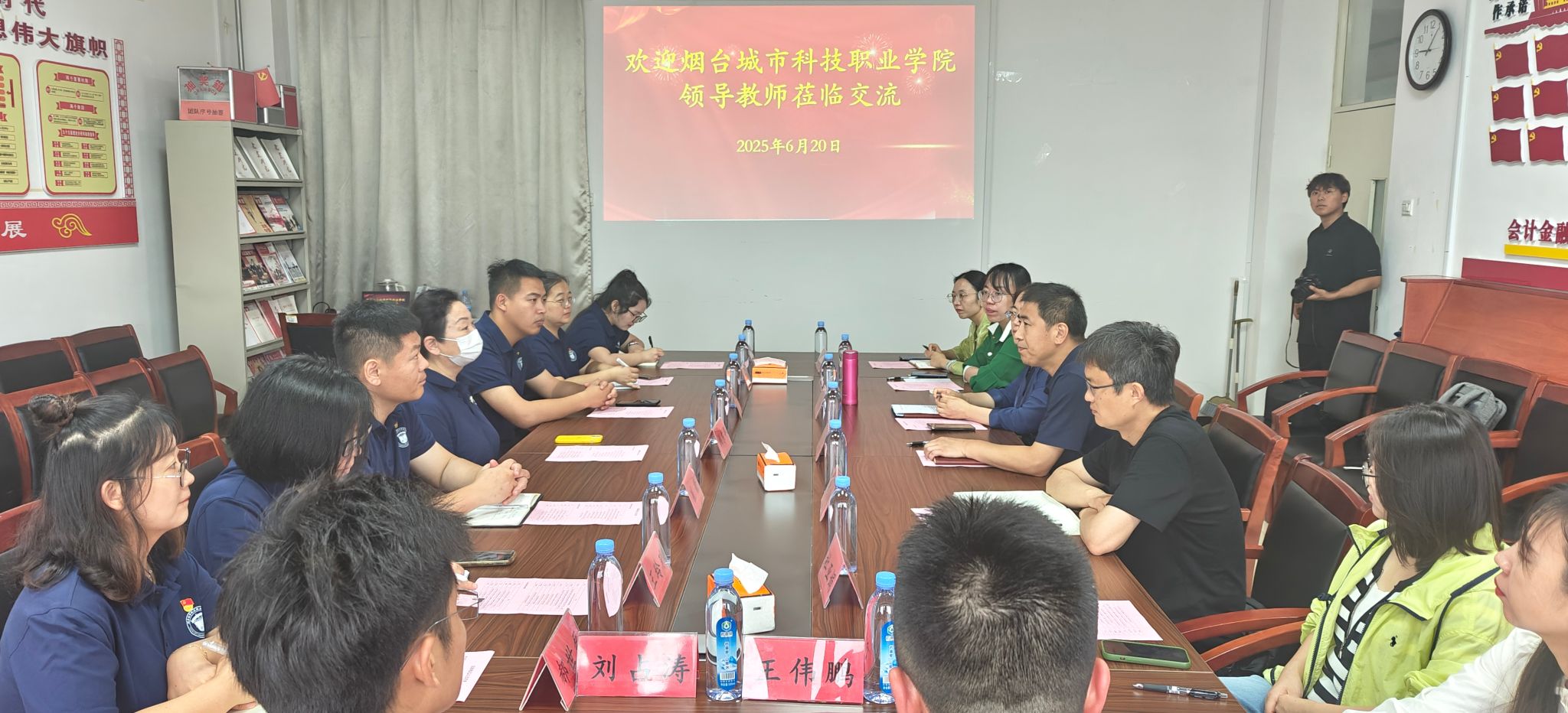本站讯 为加强院校间的交流与合作,促进教育资源共享与优势互补,推动党建工作与教育教学工作深度融合,6月20日,烟台城市科技职业学院调研团队一行9人来我校开展调研交流活动。会计金融学院党总支书记赵仁安、副院长邹婷等领导班子成员及骨干教师热情接待并参与座谈,双方围绕党建工作、招生就业、财经商贸类专业建设以及成果资源共建等核心议题展开深入调研与热烈讨论。