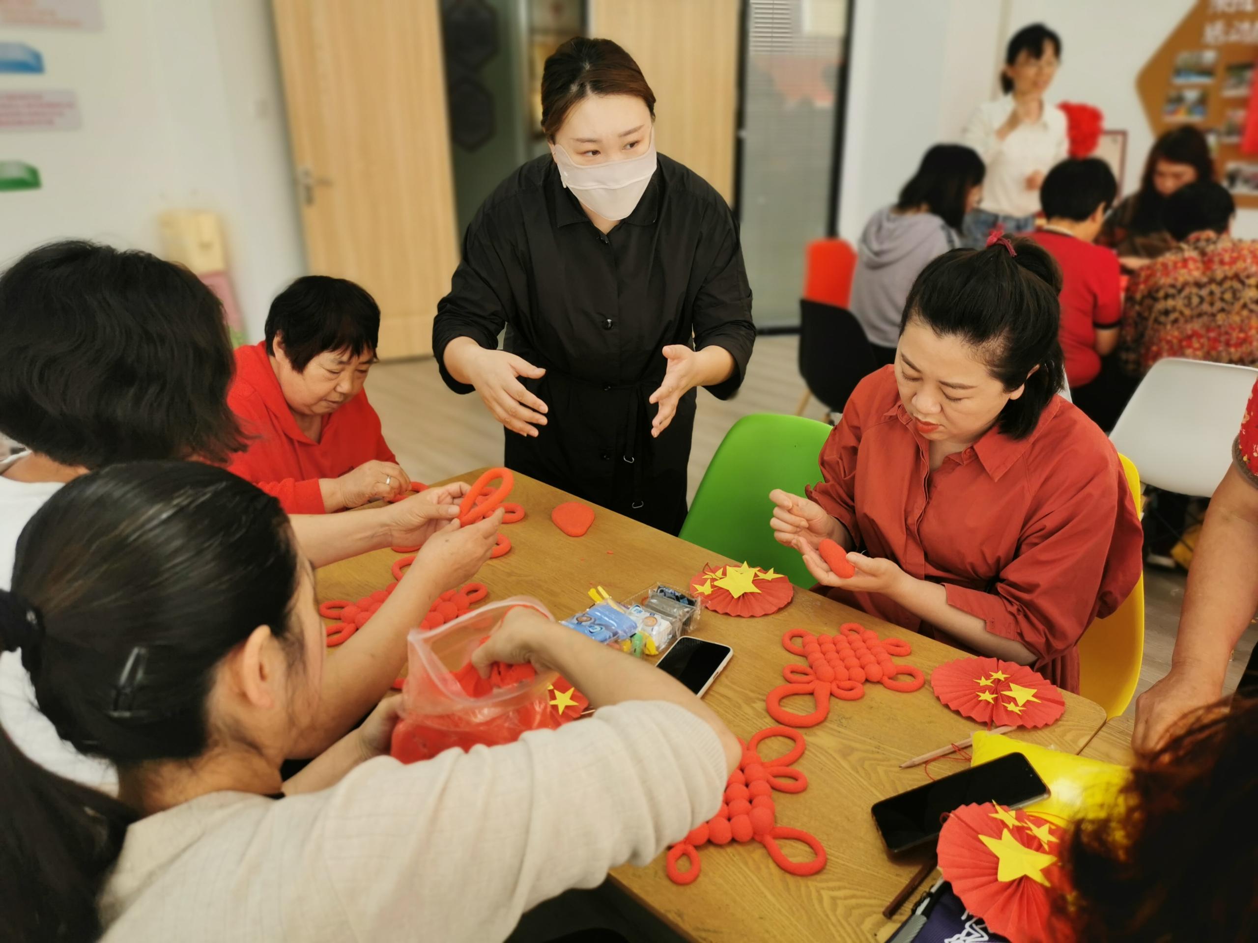 泥塑是用粘土塑制成各种形象的古老民间手工艺术,反映了劳动人民的想象力、创造力。老师们从揉土、做图案以及造型进行指导,在场居民们通过捏、搓、揉、掀等工序,一块块泥塑被捏成了红彤彤的中国结,从而体会到了节日的喜悦和浓浓的工匠精神。最后,大家一起与制作的作品合影留念,定格美好时光。