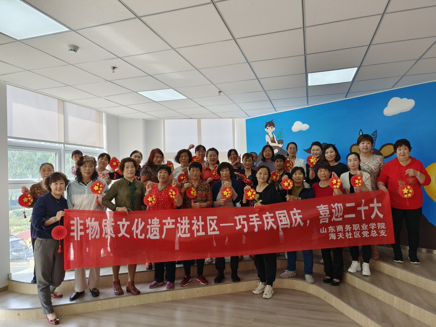 为弘扬传统文化,厚植爱国爱党情,喜迎党的二十大胜利召开,扎实推进“双报到”工作走深走实,丰富社区居民生活。近日,学校会计金融学院、文化旅游学院联合马山街道海天社区党总支开展“非物质文化遗产进社区——巧手庆国庆,喜迎二十大”主题活动。