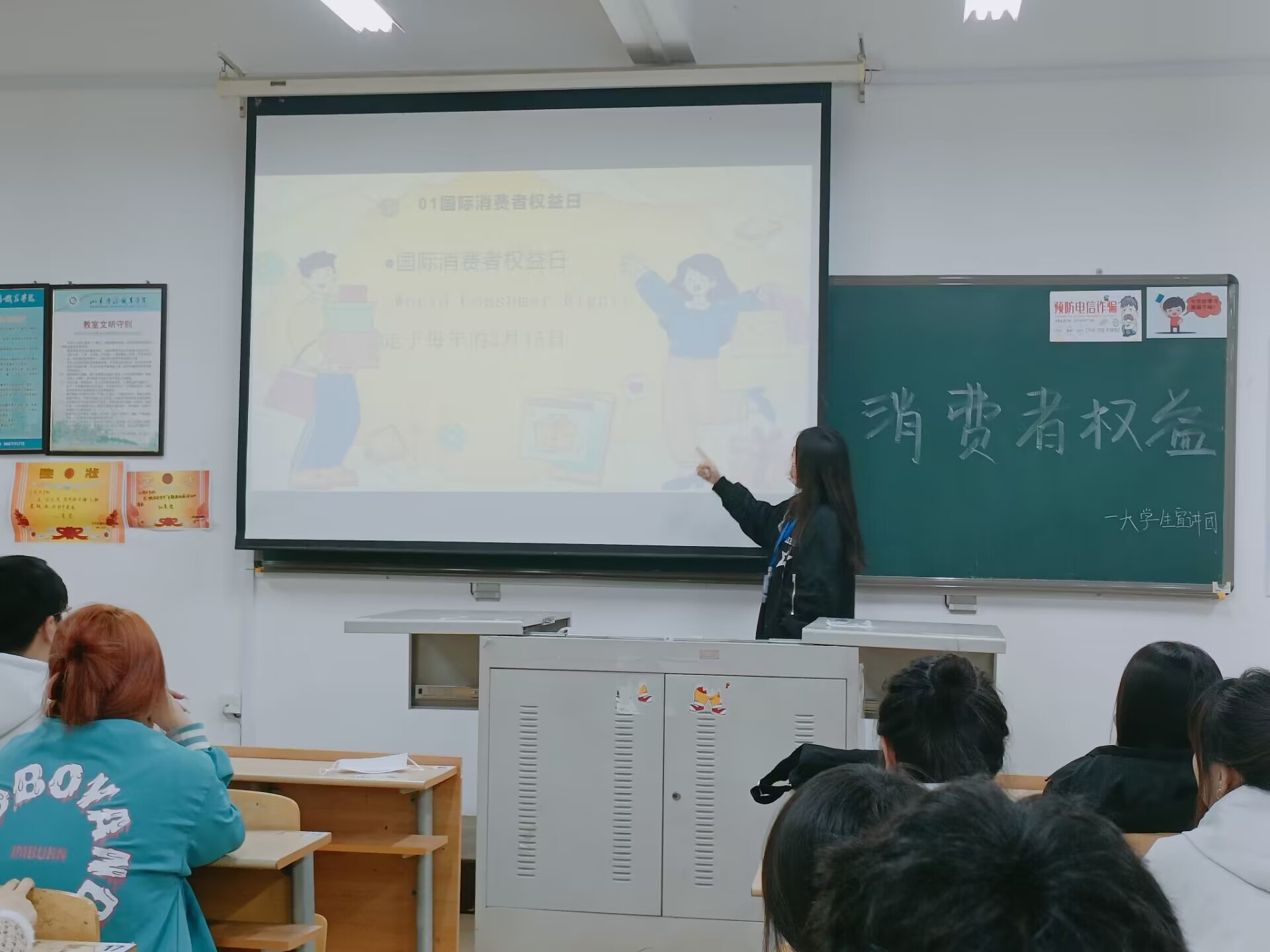 活动分为两个部分:一是在校园内进行消费维权知识的宣传和普及;二是在教室内进行真实案例的分享和讨论。活动前,宣讲团成员们认真准备了宣传资料和案例素材,熟悉了消费者权益保护法等相关法律法规,为活动的顺利进行奠定了基础。上午,宣讲员们分别在中心大道、食堂、生活区等地点向同学们发放宣传单、展示海报、解答问题,向同学们介绍了科学合理的消费观念、常见的消费陷阱和维权方法,并号召同学们树立理性消费、健康消费的观念,杜绝不良消费现象。晚上,宣讲员们走进教室,在各班级进行了真实案例的分享和讨论。他们通过播放视频、展示PPT、互动问答等方式,向同学们展示了一些关于校园贷、网购退换货、旅游购物等方面的维权案例,并提醒同学们提高安全防范意识,规避盲目消费风险。