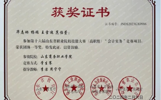 2023山东省职业院校技能大赛“会计技能”赛项一等奖