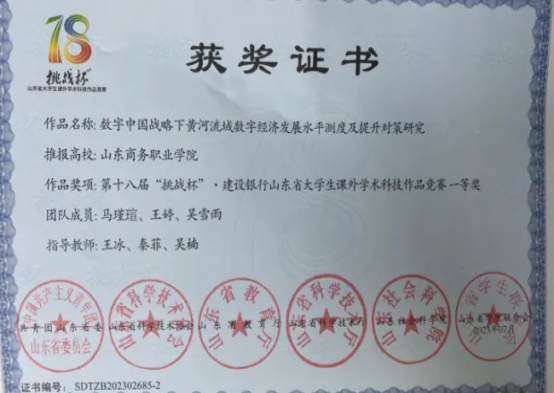 2023年度第十八届“挑战杯”建设银行山东省大学生课外学术科技作品竞赛金奖