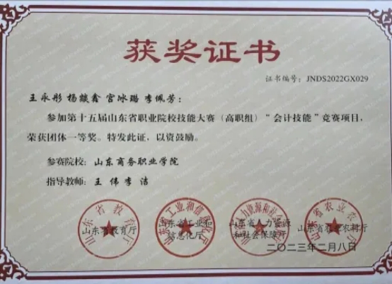 2022年山东省职业院校技能大赛 “会计技能”赛项一等奖
