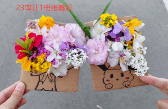自然之美:春日画卷定格校园诗意。当樱花雨飘落在教学楼前,学院策划的“以花为墨,绘就春日浪漫”活动拉开帷幕。23审计1班张鑫彤同学将废弃纸板化作画布,以干花拼贴出四季花卉图谱,嫩黄迎春与殷红海棠在纸板上绽放新生;23会计7班陈丽敏同学用压花工艺制作植物标本画,将转瞬即逝的春光封印成永恒。这些作品在“春日美术馆”主题展区展出时,观众扫描二维码即可聆听创作者讲述采风故事—原来美不仅在画中,更在拾取花瓣时俯身观察的瞬间,在调配颜料时与同伴关于色彩的争论里。