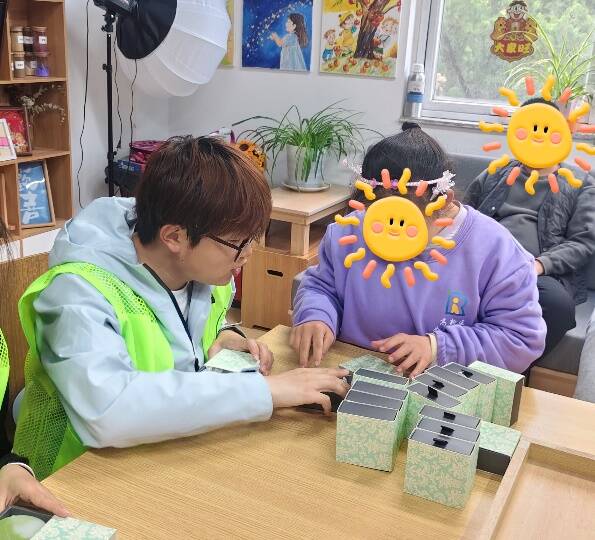 活动期间,志愿者们化身“爱心伙伴”,以耐心与包容搭建心灵沟通桥梁。在陪伴互动中,志愿者与孩子们围坐共读绘本、互动游戏、或牵手同行,陪伴孩子们在户外舒展身心,欢声笑语萦绕现场,用温暖话语与轻柔动作打破沟通壁垒,帮助孩子们消除陌生感、建立安全感,在陪伴中收获温暖与归属感。在手工创作与实践环节,志愿者结合专业特长,提前准备黏土、彩纸、串珠、手工皂等丰富材料,分层指导、手把手示范,带领孩子们完成手工创作、成品分拣、折叠包装、标签粘贴等实操任务。在轻松愉悦的氛围中,孩子们逐渐敞开心扉、专注投入,用双手创造属于自己的作品,纯真笑容不断绽放,在实践中提升动手能力、感受劳动乐趣、实现自我价值。