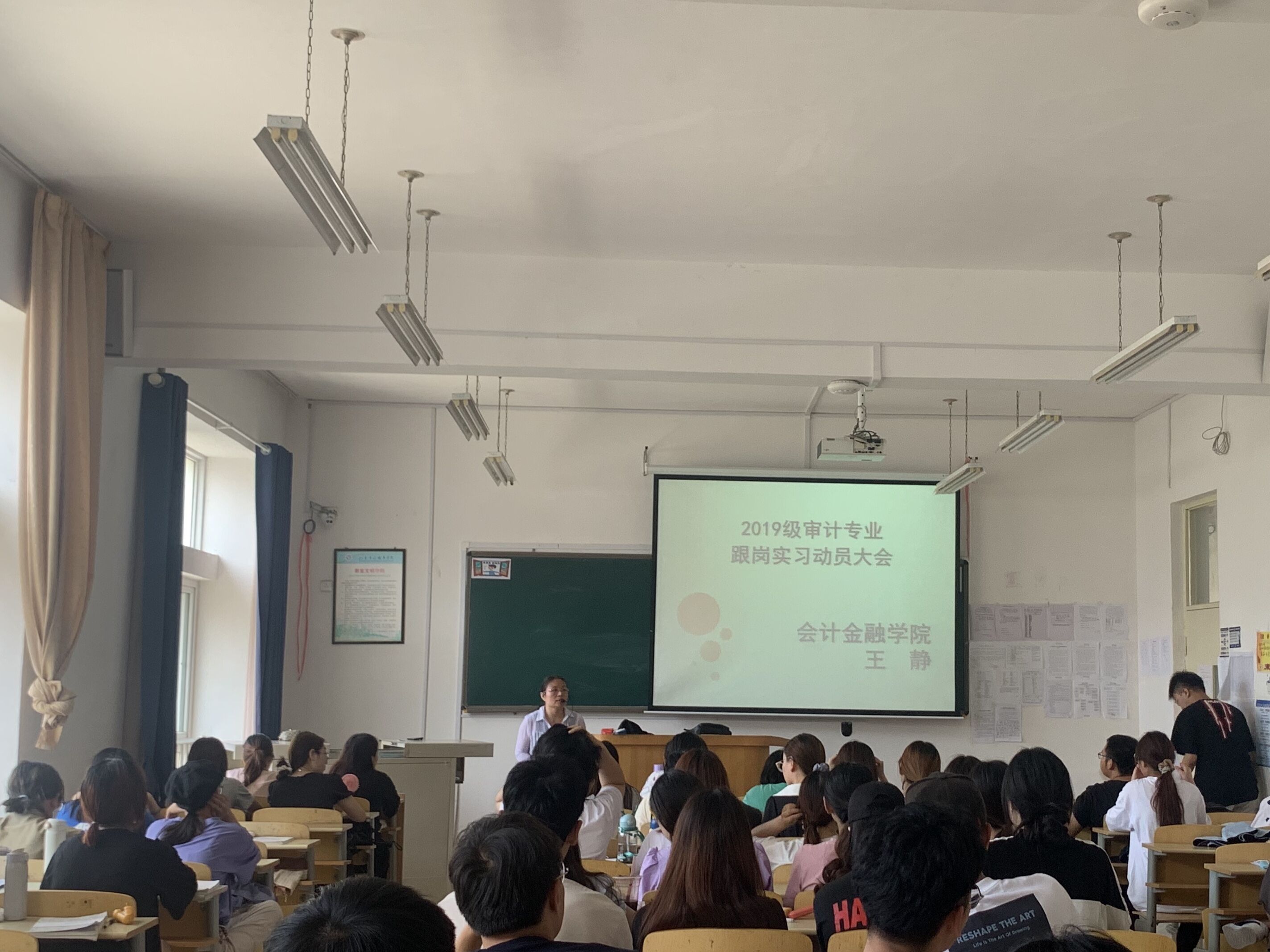 为进一步做好2019级审计专业学生跟岗实习工作,引导学生做好跟岗实习前的各项准备工作,审计专业于2021年7月2日召开2019级审计专业跟岗实习动员大会。大会由审计专业负责人王静主持,2019级75名参加跟岗实习的审计专业学生参加会议。
