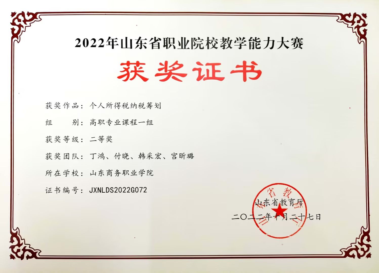 2022年山东省职业院校技能大赛 “会计技能”赛项一等奖
