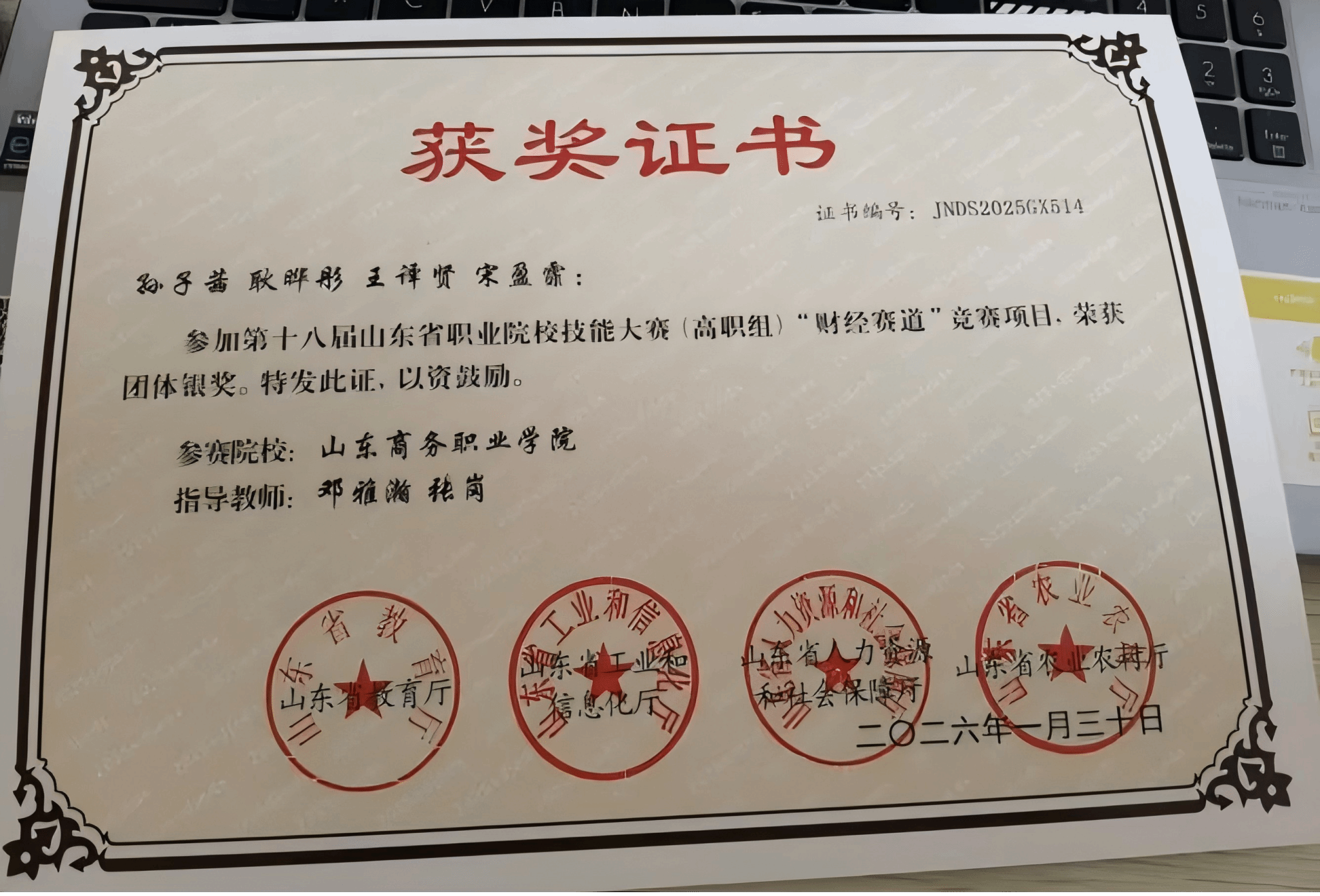 2025年山东省职业院校技能大赛财经赛道团体银奖